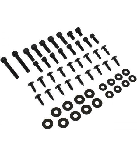 Kit visserie de carrosserie neuf en acier coloris noir de marque Replay comprenant: - Deux vis BTR M6 x 40mm - Cinq vis BTR M6 x 20mm - Deux vis BTR M6 x 10mm - Huit vis BTR M5 x 15mm - Dix huit vis cruciformes Ø5mm x 15mm Livré conforme à la photo. ...