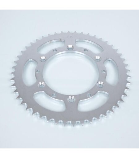 Couronne de transmission de 48 dents au pas 520 neuve, en acier coloris gris, de marque Sifam. Dimensions: - Nombre de dents : 48 - Pas de 520 - Diamètre intérieur: 119mm - Épaisseur: 6mm - Nombre de trous: 6 - Diamètre des trous: 8.5mm - Entre axe des trous: 138mm - Déport: aucun. Vendue à l'unité. Livrée conforme à la photo. ...