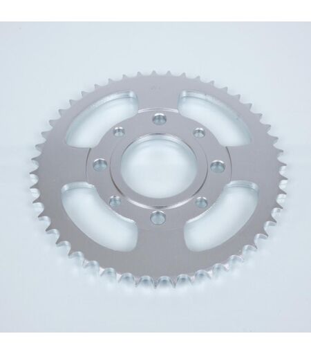 Couronne de transmission de 47 dents au pas 428 neuve en acier de coloris gris de marque Sifam. Dimensions: - Nombre de dents : 47 - Pas de 428 - Diamètre intérieur: 58mm - Épaisseur: 7mm - Nombre de trous: 4 - Diamètre des trous: 8.2/10.5mm - Entre axe des trous: 90mm - Déport: aucun. Vendue à l'unité. Livrée conforme à la photo. ...
