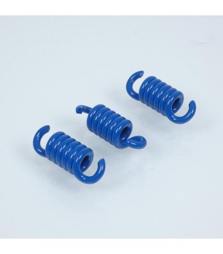 Jeu de trois ressorts de mâchoires d'embrayage Malossi neufs, coloris bleu. Le diamètre du fil est de 3.0mm (rigidité médium). Convient pour embrayage d'origine. Vendus par trois. Livrés conformes à la photo. ...