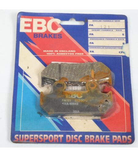 Plaquette de frein neuve de marque EBC type FA121 qualité kevlar. Dimensions: - Longueur: 81.1mm - Largeur: 42.1mm - Épaisseur: 8.9mm Vendue par paire. Livrée conforme à la photo. ...