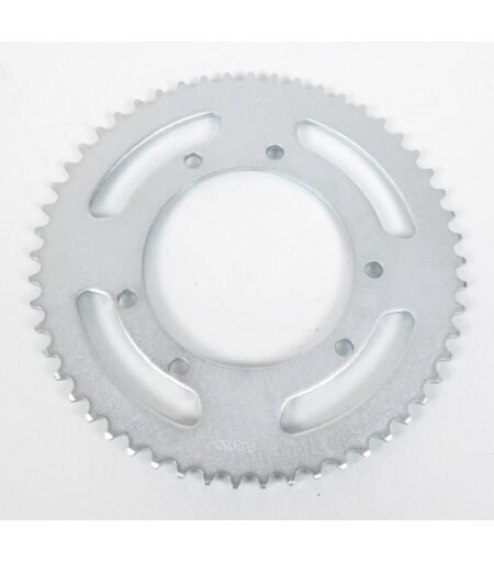Couronne de transmission de 53 dents au pas 420 neuve en acier de coloris gris de marque Sifam. Dimensions: - Nombre de dents : 53 - Pas de 420 - Diamètre intérieur: 105mm - Nombre de trous: 6 - Diamètre des trous: 8.5mm - Entre axe des trous: 125mm - Déport: aucun Vendue à l'unité. Livrée conforme à la photo. ...