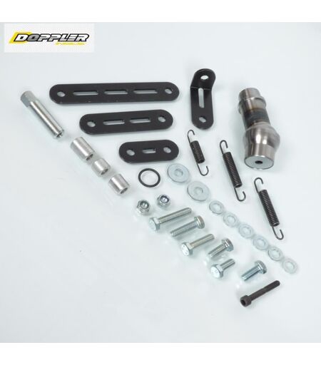 Kit fixation (rotule, pattes, visserie) de pot d'échappement neuve prévu pour pot d'échappement Doppler GP8.0 passage haut. Dimensions de la rotule : - Diamètre extérieur d'emboîtement 25/32mm. - Diamètre intérieur 22/29mm. - Longueur hors tout 92.8mm. Tout ce qui est visible sur la photo est fourni. Livré conforme à la photo. ...