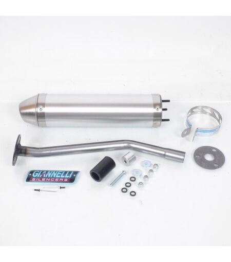 Silencieux d'échappement neuf de marque GIANNELLI en aluminium. - Diamètre extérieur silencieux 70mm - Longueur silencieux 295mm - Longueur silencieux + tube 630mm - Diamètre intérieur du tube au niveau de l'emmanchement 20mm - Entre axe fixation silencieux 40mm Tout se qui est fourni est visible sur la photo. Livré conforme aux photos. ...