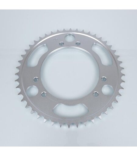 Couronne de transmission de 46 dents au pas 530 neuve, en acier coloris gris, de marque Sifam Dimensions : - Nombre de dents : 46. - Pas de 530. - Diamètre intérieur : 130mm. - Épaisseur : 9mm. - Nombre de trous : 6. - Diamètre des trous : 10.5mm. - Entre axe des trous côte à côte : 39.5mm. - Entre axe des trous : 152mm. - Déport : aucun. Vendue à l'unité. Livrée conforme à la photo. ...