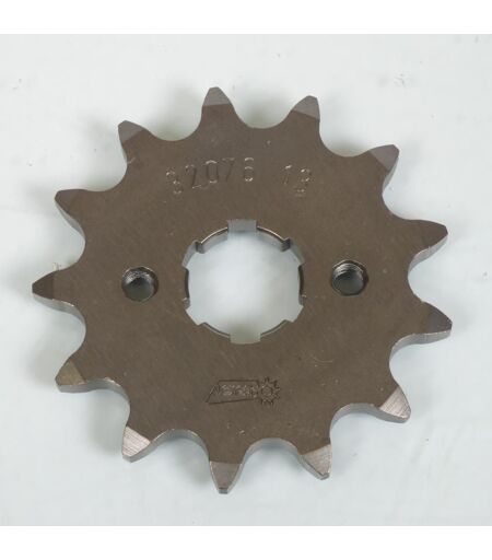 Pignon de sortie de boîte 13 dents en acier neuf de marque Esjot. Caractéristiques: - Nombre de dents: 13 dents - Pas: 520 - Diamètre intérieur cannelure: 19mm - Diamètre extérieur cannelures: 22mm - Nombre de cannelures: 6 - Largeur cannelures: 5mm - Fixation par deux trous M6 entre axe 36mm - Épaisseur au niveau de la chaine: 5.8mm - Épaisseur au niveau des cannelures: 5.8mm - Déport: Non - Trou pour le capteur de vitesse: Non Vendu à l'unité. Livré conforme à la photo. ...