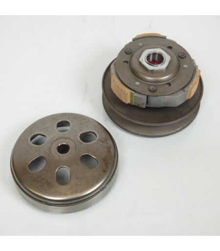 Bloc embrayage complet neuf pour scooter Chinois 125cm3 4 temps équipés d'un moteur type GY6. Ce kit embrayage comprend correcteur de couple, poulie, plateau et cloche d'embrayage. Dimensions: - Diamètre extérieur correcteur de couple: 142.15mm - Diamètre intérieur (axe) coté correcteur de couple: 20mm - Diamètre intérieur (axe) coté plateau d'embrayage: 15/22mm - Diamètre intérieur cloche d'embrayage: 125mm - Diamètre intérieur cannelures cloche d'embrayage: 13.7/15mm - Diamètre extérieur cloche d'embrayage: 137.35mm Livré conforme à la photo. ...
