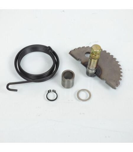 Kit axe de kick complet neuf comprenant axe, ressort, rondelle clip et entretoise. Convient aux scooters Chinois à moteur 4 temps. Caractéristiques: - Axe de kick : diamètre 14mm, longueur totale 55mm. - Bague entretoise : diamètre intérieur 14mm, extérieur 18mm longueur 21mm. - Diamètre de la couronne dentée : 88.5mm environ. Livré conforme à la photo. ...