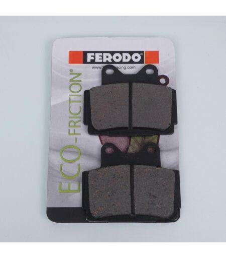 Plaquettes de frein organiques route neuves de marque FERODO ECO-Friction EF. Dimensions: - Longueur : 67.8mm. - Largeur : 55.9mm. - Épaisseur : 8.7mm. FERODO ECO-Friction EF : niveau de friction moyen-élevé et constant, procurant un excellent contrôle et une excellente performance de freinage. Caractéristiques principales : - Rapport qualité / prix exceptionnel. - Excellente durée de vie sans provoquer une usure élevée du disque. - Convient aux disques de frein inox et fonte. - Bonne performance en conditions humides. - Compatible avec les systèmes ABS. Vendues par paire. Livrées conformes à la photo. ...