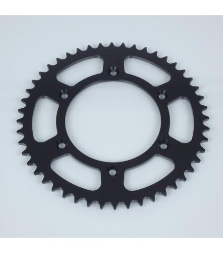 Couronne de transmission de 48 dents au pas 520 neuve, en acier coloris noir, de marque Esjot. Dimensions : - Nombre de dents : 48. - Pas de 520. - Diamètre intérieur : 125mm. - Épaisseur : 6mm. - Nombre de trous : 6. - Diamètre des trous : 8.5mm. - Entre axe des trous : 150mm. - Déport : aucun. Vendue à l'unité. Livrée conforme à la photo. ...