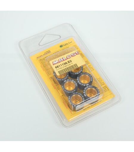 Kit galet rouleau de variateur neuf de marque Malossi. Caractéristiques : - Diamètre extérieur : 20mm. - Largeur : 12mm. - Poids : 10 grammes. - Coloris : noir. Vendu par 6 unités. Livré conforme à la photo. ...