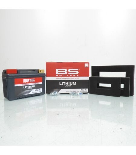 Batterie polymère BS Battery neuve haut de gamme au Lithium Ion référence BSLi-03 (LIB9 ou HJB9Q-FP). Permet le remplacement des références YT7B-4, YT9B-4, YTX7A, YTX7A-BS, YT7B-BS, YT9B-BS, YTX9-BS, YB9-B et 12N9-4B-1. Caractéristiques: - Longueur: 134mm - Largeur: 65mm - Hauteur: 92mm - Tension: 12V - Capacité: 36Wh - CCA: 210A - Bornes + à gauche BS Battery lance sa nouvelle gamme de batteries Lithium-ion. Conçues pour les pilotes les plus exigeants, à la recherche de performances plus élevées et d'accélérations plus rapides. Le poids de la batterie a été drastiquement réduit alors que sa durée de vie est beaucoup plus longue. La très faible autodécharge permet de démarrer le moteur après une longue période sans utilisation et ce, même par temps froid. Caractéristiques: - Charge super rapide. - Jusqu'à 70% plus légère qu?une batterie acide. - Conception waterproof. - Inclinaison : ...