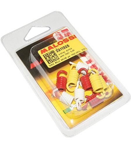 Kit ressorts de mâchoire d'embrayage Malossi MHR neuf. Le kit comprend trois jeux de ressorts de rigidités différentes : -Un jeu de 3 ressorts souple (blanc) -Un jeu de 3 ressorts médium (jaune) -Un jeu de 3 ressorts dur (rouge). Convient pour embrayage d'origine, embrayages Malossi MHR Fly et Delta. Livré conforme à la photo. ...