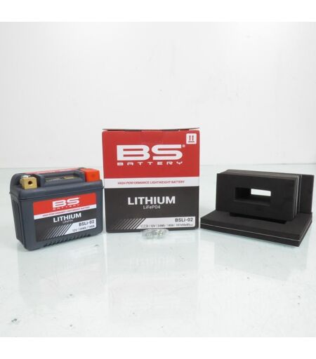 Batterie polymère BS Battery neuve haut de gamme au Lithium Ion référence BSLi-02 (LIB5L ou HJB5L-FP). Permet le remplacement des références YTZ5S, YTZ7S, YTX4L, YTX5L, YTZ7S-BS, YTX4L-BS, YTX5L-BS, YTX7L-BS, YB4L-B, YB5L-B, YB6.5L-B, 12N5-3B, 12N5.5-3B et 12N7-3B. Caractéristiques: - Longueur: 107mm - Largeur: 56mm - Hauteur: 85mm - Tension: 12V - Capacité: 24Wh - CCA: 140A - Bornes + à droite BS Battery lance sa nouvelle gamme de batteries Lithium-ion. Conçues pour les pilotes les plus exigeants, à la recherche de performances plus élevées et d'accélérations plus rapides. Le poids de la batterie a été drastiquement réduit alors que sa durée de vie est beaucoup plus longue. La très faible autodécharge permet de démarrer le moteur après une longue période sans utilisation et ce, même par temps froid. Caractéristiques: - Charge super rapide. - Jusqu'à 70% plus légère qu?une batterie acide. - ...