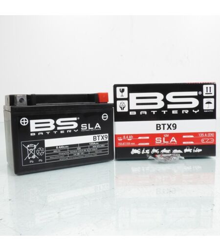 Batterie BS Battery neuve sans entretien activée usine vendue avec acide référence YTX9 type SLA. Caractéristiques: - Longueur: 150mm - Largeur: 87mm - Hauteur: 105mm - Tension: 12V - Capacité: 8.4Ah - CCA: 135A - Bornes + à gauche Les batteries BS sont une alternative fiable en vue d?un remplacement. Elles répondent aux normes électriques en vigueur et aux préconisations des constructeurs. Avantages: - Activée usine, pré-chargée, prête à l?emploi. - Cycle de vie supérieur (plus de 3 fois une batterie conventionnelle). - Facilité d?installation (aucun risque de déversement d?acide). - Haute puissance. - Aucun entretien. - Sans danger (pas de transport d?acide). - Montage multi-position (vertical ou horizontal). - Scellée, pas d?émission de gaz et de risque de déversement d?acide. - Préconisée pour les conditions climatiques froides. Vendue à l unité. ...
