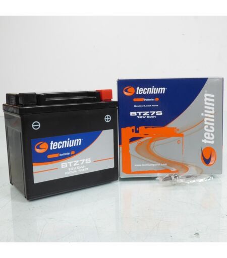 Batterie neuve de marque TECNIUM sans entretien activée usine prête à l'emploi vendue avec acide référence YTZ7S type SLA. Caractéristiques: - Longueur: 112mm - Largeur: 69mm - Hauteur: 103mm - Tension: 12V - Capacité: 6Ah - CCA: 130A - Bornes + à droite Les batteries activées usine présentent toutes les caractéristiques des batteries sans entretien mais avec encore plus de puissance grâce à leur construction radiale et aux plaques additionnelles. Avantages: - Technologie VRLA (Valve Regulated Lead Acid). - Activée usine, pré-chargée, prête à l?emploi. - Cycle de vie supérieur (plus de 3 fois une batterie conventionnelle). - Facilité d?installation (aucun risque de déversement d?acide). - Haute puissance. - Aucun entretien. - Sans danger (pas de transport d?acide). - Montage multi-position (vertical ou horizontal). - Scellée, pas d?émission de gaz et de risque de déversement ...