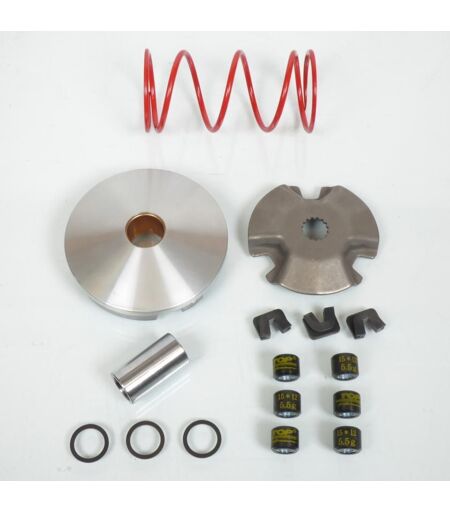 Variateur de transmission neuf adaptable de marque Top Performances modèle Variotop "TPR". Ce kit variateur comprend : - Une joue mobile de variateur (Ø95mm). - Un plateau d'appui avec ses trois guides. - Un canon de variateur dimensions 16x20.95x38.6mm. - Six galets 5.5grs dimensions 15x12mm. - trois rondelles de calage 16.2x20.8x0.8/1/1.2mm - Un ressort de poussée d'embrayage rouge (longueur 104mm Ø3.75mm). Tout ce qui est fourni est visible sur la photo. Vendu à l'unité. Livré conforme à la photo. ...