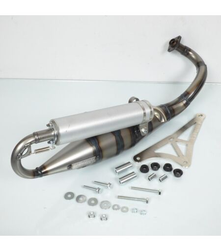 Ligne de pot d'échappement de détente neuve de marque Yasuni modèle R équipé d'un silencieux gris en aluminium. Le « R » est une évolution du « Z », avec un volume plus important et un cône plus large. Un complément idéal pour les cylindres Sport/MidRace de 70 cc. Il fonctionne parfaitement avec les cylindres de 50 ou 70 cc, mais c'est sur les cylindres Sport de 70 cc qu'il exprime véritablement tout son potentiel. Pour un meilleur rendement, il est conseillé de modifier le développement du variateur. Avec certificat d'homologation. Il est équipé d'un silencieux en aluminium d'excellente qualité. Vendu avec le nécessaire de montage. Livré conforme à la photo. ...