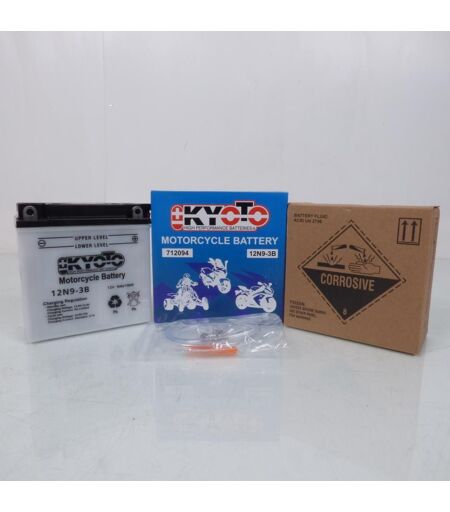 Batterie Kyoto acide conventionnelle au plomb neuve avec entretien vendue avec acide référence 12N9-3B. Caractéristiques: - Longueur: 137mm - Largeur: 76mm - Hauteur: 140mm - Tension: 12V - Capacité: 9Ah - CCA: 85A - Bornes + à droite - Volume acide: 0.6L Cette batterie offre un excellent rapport Qualité/Prix. Elle est facile à mettre en place. Une notice d'utilisation est fournie. Vendue à l'unité. Livrée conforme à la photo. ...