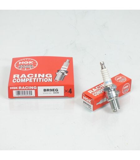 Boite de 10 bougie d'allumage NGK Racing compétition référence BR9EG neuve. Dimensions: - Culot diamètre: 14mm - Longueur filetée du culot: 19mm Cette bougie est équipée d'une électrode en alliage de Nickel. Elle est particulièrement adaptée aux moteurs deux temps. Vendue par 4. Livrée conforme à la photo. ...