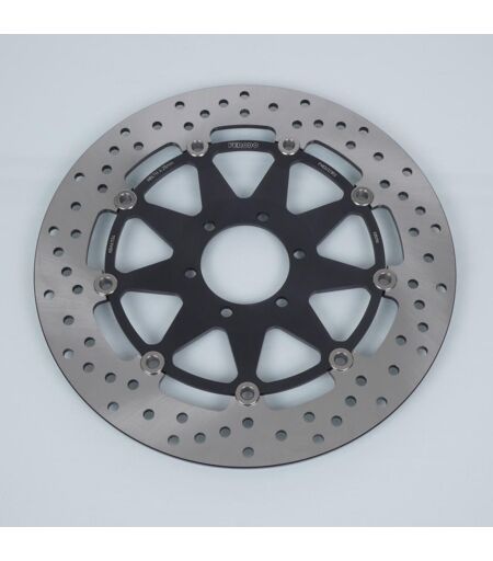 Disque de frein avant flottant rond en acier neuf de marque Ferodo, référence FMD0121RX. Dimensions : - Diamètre extérieur : 300mm. - Diamètre intérieur : 64mm. - Épaisseur : 5mm. - Nombre de trous : 6. - Diamètre des trous de fixation : 8.5mm. - Entre axe des trous de fixation : 80mm. - Déport : 10mm. Convient en remplacement des références origine suivantes : - Yamaha : 3 HE 2581T 00 / 3CV 25830 00 / 3CV 25830 10 / 3CW 2581T 00 / 3RG 2581T 00 / 4HM 2581T 00 / 4HM 2581T 11 / 3CW 2582T 00 / 4HM 2582T 21. - Moto Guzzi : 306133000. Vendu à l'unité. Livré conforme à la photo. ...