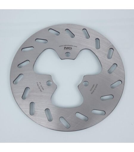 Disque de frein arrière rond fixe en acier neuf de marque NG Brake Disc. Dimensions: - Diamètre extérieur : 218mm. - Diamètre intérieur : 62mm. - Épaisseur : 3.6mm. - Nombre de trous : 3. - Diamètre des trous de fixation : 10.5mm. - Entre axe des trous de fixation : 69.4mm. - Déport : aucun. Vendu à l'unité. Livré conforme à la photo. ...
