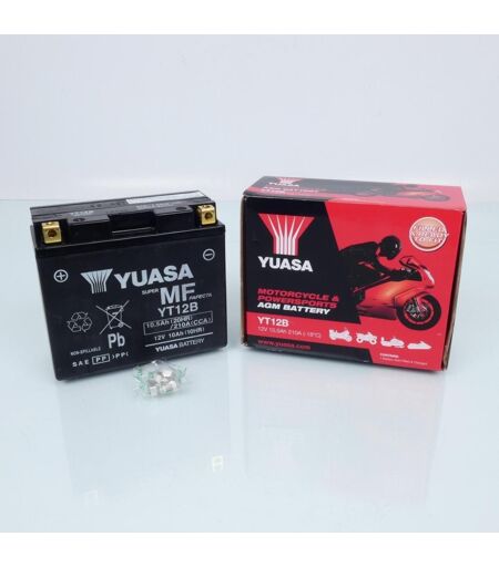 Batterie Yuasa au plomb type SLA AGM VRLA neuve sans entretien vendue prête à l'emploi référence YTX7L. Caractéristiques : - Longueur : 150mm. - Largeur : 69mm. - Hauteur : 130mm. - Tension : 12V. - Capacité : 10.5Ah. - CCA : 210A. - Borne + à gauche. - Volume Acide: 0.5L. La batterie YUASA est très souvent utilisée en monte d'origine par les constructeurs. Elle est reconnue pour sa qualité et sa durée de vie exceptionnelle. Choisir Yuasa, c'est opter pour la tranquillité. Cette batterie sans entretien est livrée « prête à l?emploi », activée et chargée en usine (SLA). Aucune manipulation dangereuse n'est à effectuer. Technologie AGM «Absorbed Glass Mat» : l?électrolyte se trouvant dans la batterie étanche est absorbé ou stabilisé à l?intérieur par des buvards en fibre de verre. La batterie pourra être placée en position inclinée. Vendue à l'unité. Livrée conforme à la photo. ...