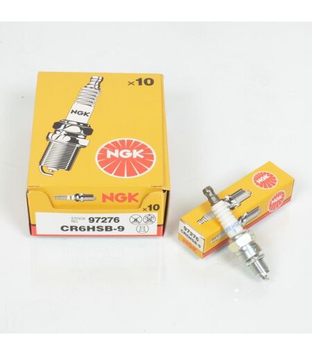Boîte de 10 bougies d'allumage NGK CR6HSB-9 neuve. Caractéristiques : - Type de bougie : Standard - Type de connexion : Olive (fixe) - Culot diamètre : 10mm - Longueur filetée du culot : 12.7mm - Hexagonal : 16mm L'électrode est préréglée à un écartement de 0,9mm. En remplacement de la référence d'origine : - Honda : 31917-MKC-A01 Vendues par boîte de 10. Livrées conforme à la photo. ...