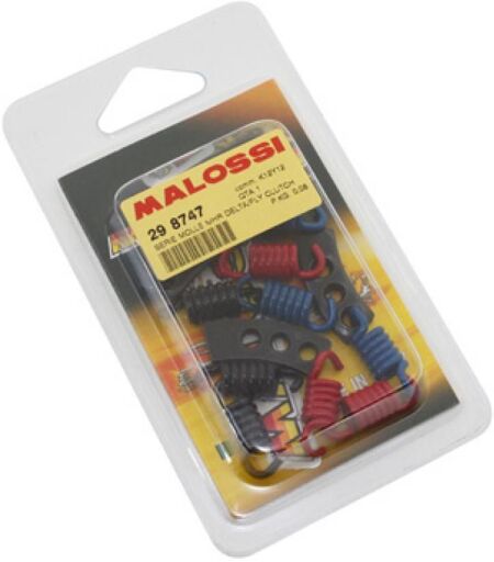 Kit ressorts de mâchoires d'embrayage Malossi MHR neuf. Le kit comprend trois jeux de ressorts de rigidités différentes : - Un jeu de 3 ressorts souple (rouge Ø2mm). - Un jeu de 3 ressorts médium (bleu Ø2.1mm). - Un jeu de 3 ressorts dur (noir Ø2.2mm). Trois plaquettes de réglages sont également fournies. Convient pour embrayages Malossi MHR Fly et Delta. Livré conforme à la photo. ...