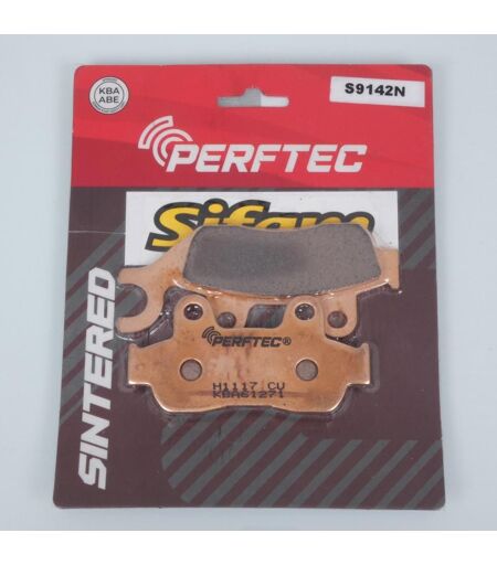 Plaquettes de frein métal fritté sport neuves. Dimensions: - Longueur 1 : 101.5mm. - Largeur 1 : 43mm. - Épaisseur 1 : 8.0mm. - Longueur 2 : 85.4mm. - Largeur 2 : 43mm. - Épaisseur 2 : 8mm. 100% des plaquettes Perftec sont de qualité "SINTERED METAL". Elles conviennent parfaitement aux motos puissantes. Performances de freinage stables et accrues pour les freins avant et arrière. Haut niveau de confort, longue durée de vie dans diverses conditions telles que les routes humides, les changements de températures. Conformes à la norme KBA/ABE : les matériaux de friction répondent aux critères les plus stricts selon les normes Européennes. Vendues par paire. Livrées conformes à la photo. ...