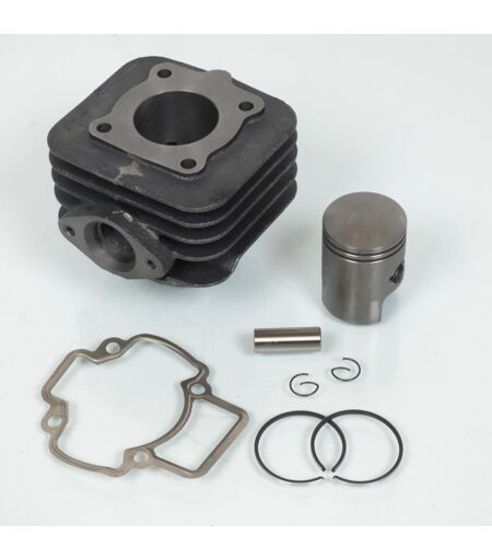 Kit cylindre piston neuf adaptable de marque TNT en fonte à refroidissement par air diamètre 40mm, comprenant: - Cylindre. - Piston. - Segments. - Axe de piston diamètre 12mm. - clips d'axe de piston. - Joint d'embase. Vendu à l'unité. Livré conforme à la photo. ...