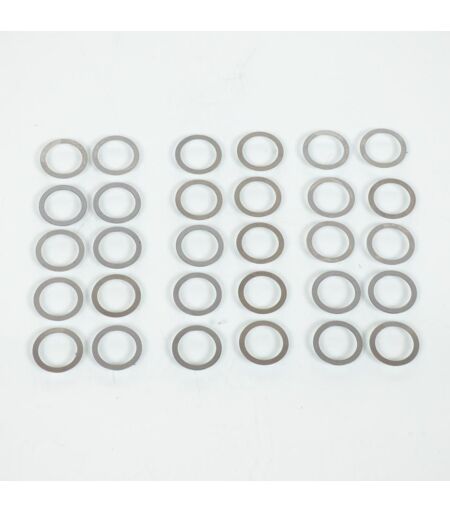 Jeu de 30 rondelles de compensation, calage de variateur neuve adaptable. Dimensions: - Diamètre intérieur: 16mm - Diamètre extérieur: 20.8mm - Épaisseur: 10 de 0.1mm, 10 de 0.2mm et 10 de 0.5mm Vendu par 30. Livré conforme à la photo. ...