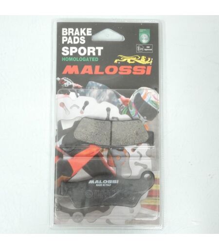 Paire de plaquettes de frein organiques neuves de marque Malossi, référence '6215020BB'. Dimensions : - Longueur : 93.9mm - Largeur : 36.5mm - Épaisseur : 7.6mm Les Brake Pads SPORT Malossi sont des plaquettes de frein réalisées avec un matériau de friction à base organique, entièrement exempt d’amiante. Cette ligne de produits représente l’excellence pour le remplacement des plaquettes de premier équipement. Le mélange de ces plaquettes garantit une bonne durée de vie, sans pénaliser l’efficacité du freinage. Les BRAKE PADS SPORT associent aux performances excellentes une modulabilité élevée du freinage ce qui permet d’arrêter le véhicule avec un niveau de sécurité élevé et sans perte de contrôle quelles que soient les circonstances. Vendues par paire. Livrées conforme à la photo. ...
