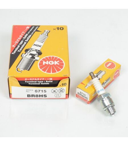 Boîte de 10 bougies d'allumage NGK BR8HS / 6715 Terminal solide (non séparable) neuve. Caractéristiques : - Type de bougie : Standard - Type de connexion : Olive (fixe) - Culot diamètre : 14mm - Longueur filetée du culot : 12.7mm - Hexagonal : 21mm Cette bougie est équipée d'une électrode centrale en cuivre et est particulièrement adaptée aux moteurs deux temps. Vendues par boîte de 10. Livrées conforme à la photo. ...