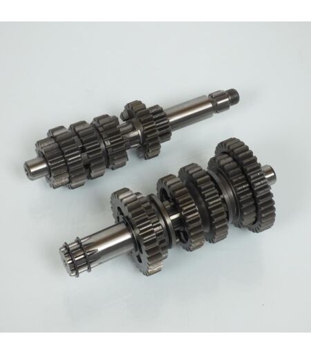 Boite de vitesse "courte" neuve de marque Doppler comprenant l'arbre primaire et l'arbre secondaire équipés de leurs pignons (engrenage). La boîte de vitesse « courte » est entièrement taillée dans la masse dans un acier de grande qualité. Son étalonnage est complètement revu. Le 1er rapport est plus long et les 5 rapports suivants disposent d?un étalonnage plus rapproché. Grâce à cette boîte, le régime moteur est mieux conservé pendant le passage des vitesses. Rapport : - 1ère 34/16 - 2ème 30/16 - 3ème 29/19 - 4ème 27/20 - 5ème 26/21 - 6ème 25/22 Prévu pour moto 50cc équipé d'un moteur Minarelli AM6 (6 vitesses). Vendue nue à l'unité. Livrée conforme à la photo. ...