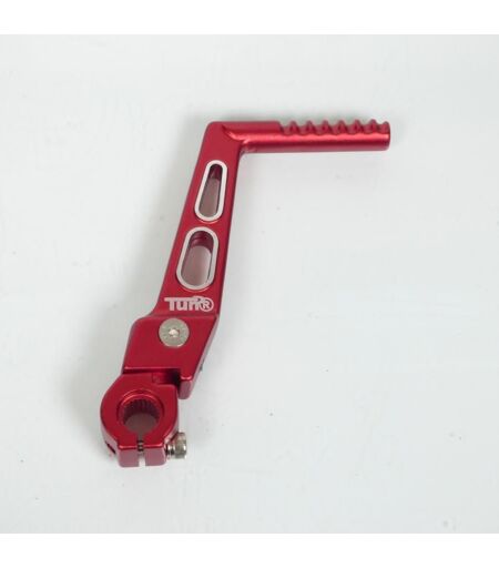 Kick de démarrage repliable neuf de marque Tun'R en aluminium coloris rouge. Convient aux moteurs Derbi 5cc Euro 2, Euro 3 et Euro 4. - Diamètre intérieur au niveau de l'axe de kick : 13/14mm. Vendu nu à l'unité. Livré conforme à la photo. ...