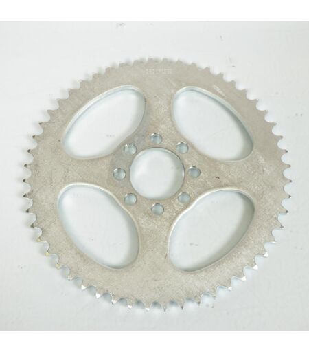 Couronne de transmission arrière neuve en acier de coloris gris marque sifam. Dimensions: - Nombre de dents: 52 dents - Pas de 420 - Alésage (diamètre intérieur): 44mm - Nombre de trous de fixation: 8 - Diamètre des trous de fixation: 8.5mm - Entre axe des trous de fixation: 60mm - Épaisseur au niveau des dents: 6mm - Déport: 0mm Vendue à l'unité sans la visserie. Livrée conforme à la photo. ...