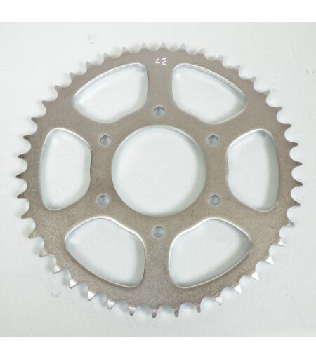 Couronne de transmission arrière neuve en acier de coloris gris marque sifam. Dimensions: - Nombre de dents: 42 dents - Pas de 520 - Alésage (diamètre intérieur): 72mm - Nombre de trous de fixation: 6 - Diamètre des trous de fixation: 8.25mm - Entre axe des trous de fixation: 96mm - Épaisseur au niveau des dents: 6mm - Déport: 0mm Vendue à l'unité sans la visserie. Livrée conforme à la photo. ...