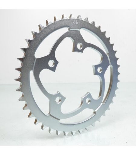 Couronne de transmission arrière neuve en acier de coloris gris marque sifam. Dimensions: - Nombre de dents: 42 dents - Pas de 530 - Alésage (diamètre intérieur): 87mm - Nombre de trous de fixation: 5 - Diamètre des trous de fixation: 10.5mm - Entre axe des trous de fixation: 110mm - Épaisseur au niveau des dents: 9mm - Déport: 0mm Vendue à l'unité sans la visserie. Livrée conforme à la photo. ...