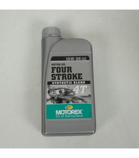 Bidon d'huile moteur 15W 50 pour moteur 4T, 100% Synthèse de la marque MOTOREX gamme Synthetic Blend en bidon de 1L. Huile moteur synthétique pour tout véhicule équipé de moteur 4 temps. Polyvalente, elle assure lubrification et protection de votre moteur. Caractéristiques: - Viscosité: 15W50. - Qualité d'huile: 100% synthèse. - Capacité bidon: 1L. Conforme aux normes: JASO MA2, API SL, SJ, SH, SG. Vendu à l'unité en bidon de 1L. Livré conforme à la photo. ...