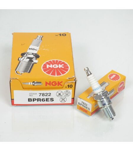 Boîte de 10 bougies d'allumage NGK BPR6ES neuve. Caractéristiques : - Type de bougie : Standard - Type de connexion : Olive (amovible) - Culot diamètre : 14mm - Longueur filetée du culot : 19mm - Hexagonal : 21mm Cette bougie est équipée d'une électrode centrale en cuivre et est particulièrement adaptée aux moteurs deux temps. Vendues par boîte de 10. Livrées conforme à la photo. ...
