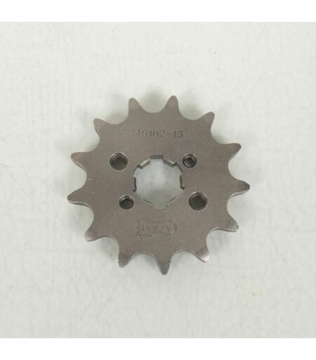 Pignon de sortie de boîte 13 dents de marque AFAM référence "49102-13" neuf en acier de coloris gris. Caractéristiques: - Nombre de dents : 13 dents. - Pas : 420. - Diamètre intérieur cannelures : 14mm. - Diamètre extérieur cannelures : 17mm. - Nombre de cannelures : 6. - Épaisseur au niveau de la chaîne : 5.9mm. - Épaisseur au niveau des cannelures : 5.9mm. - Déport : Non. Vendu à l'unité nu. Livré conforme à la photo. ...