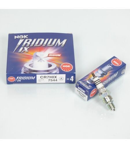 Boite de 4 bougies d'allumage NGK CR7HIX Iridium neuve. Dimensions : - Culot diamètre : 10mm - Longueur filetée du culot : 12.7mm - Hexagonal : 16mm - Type de connexion : Sans olive Cette bougie est équipée d'une électrode centrale en Iridium améliorant le rendement moteur. Cette bougie est particulièrement adaptée aux moteurs quatre temps. Vendues par boite de 4 bougies. Livrées conforme à la photo. ...