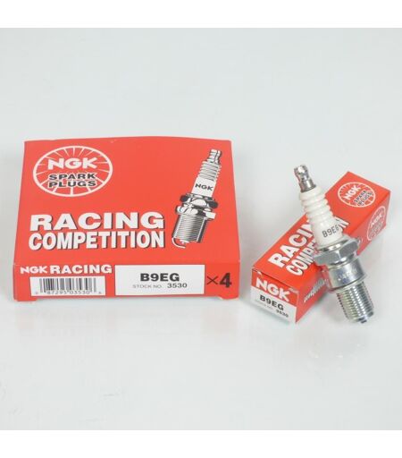 Boite de 4 bougies d'allumage NGK B9EG neuve. Dimensions : - Culot diamètre : 14mm - Longueur filetée du culot : 19mm - Hexagonal : 21mm Cette bougie est équipée d'une électrode en alliage de Nickel. Elle est particulièrement adaptée aux moteurs deux temps. Vendues par boite de 4 bougies. Livrées conforme à la photo. ...