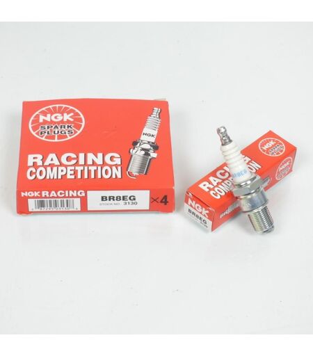 Boîte de 4 bougies d'allumage NGK BR8EG racing compétition neuve. Caractéristiques : - Type de bougie : Racing - Utilisation : Compétition - Type de connexion : Olive (amovible) - Culot diamètre : 14mm - Longueur filetée du culot : 19mm - Hexagonal : 21mm Cette bougie est équipée d'une électrode en alliage de Nickel. Elle est particulièrement adaptée aux moteurs deux temps. Vendues par boîte de 4. Livrées conforme à la photo. ...