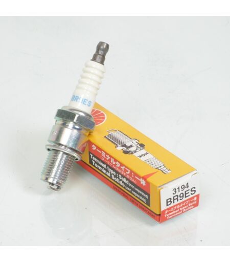 Bougie d'allumage NGK BR9ES / 3194 Terminal solide (non séparable) neuve. Caractéristiques : - Type de bougie : Standard - Type de connexion : Olive (fixe) - Culot diamètre : 14mm - Longueur filetée du culot : 19mm - Hexagonal : 21mm Cette bougie est équipée d'une électrode centrale en cuivre et est particulièrement adaptée aux moteurs deux temps. Vendue à l'unité. Livrée conforme à la photo. ...