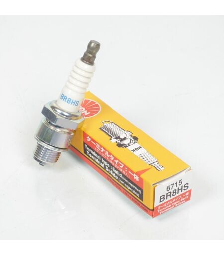 Bougie d'allumage NGK BR8HS / 6715 Terminal solide (non séparable) neuve. Caractéristiques : - Type de bougie : Standard - Type de connexion : Olive (fixe) - Culot diamètre : 14mm - Longueur filetée du culot : 12.7mm - Hexagonal : 21mm Cette bougie est équipée d'une électrode centrale en cuivre et est particulièrement adaptée aux moteurs deux temps. Vendue à l'unité. Livrée conforme à la photo. ...