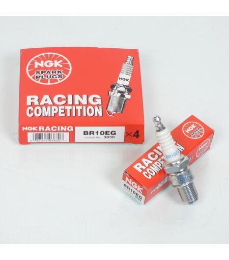 Boite de 4 bougies d'allumage NGK BR10EG neuve. Dimensions: - Culot diamètre: 14mm - Longueur filetée du culot: 19mm Cette bougie est équipée d'une électrode en alliage de Nickel. Elle est particulièrement adaptée aux moteurs deux temps. Vendues par boite de 4 bougies. Livrées conforme à la photo. ...