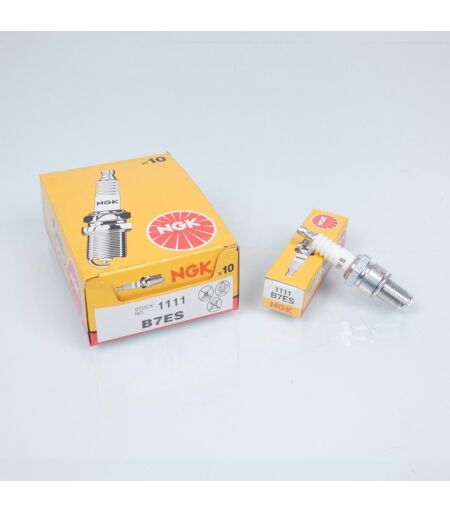 Boîte de 10 bougies d'allumage NGK B7ES neuves. Dimensions : - Culot diamètre 14mm. - Longueur filetée du culot : 19mm. - Le démontage peut être effectué à l'aide d'une clé de 21mm. L'électrode est préréglée à un écartement de 0.8mm. Cette bougie est particulièrement adaptée aux moteurs quatre temps. Vendues par boîte de 10. Livrée conforme à la photo. ...