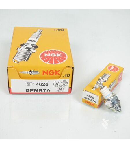 Boîte de 10 bougies d'allumage NGK BPMR7A neuve. Caractéristiques : - Type de bougie : Standard - Type de connexion : Olive (amovible) - Culot diamètre : 14mm - Longueur filetée du culot : 9.5mm - Hexagonal : 19mm Cette bougie est particulièrement adaptée aux moteurs deux temps. Vendues par boîte de 10. Livrées conforme à la photo. ...